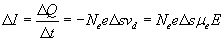 Let us consider a conductor under the influence of an external electric field. If represents the number of electrons per unit volume, then the charge crossing an area that is normal to the direction of the drift velocity is given by: