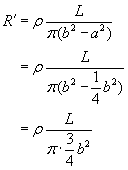 A disc of thickness 't' has radius 'b' and conductivity of the disc material is 'a' . A central hole of radius