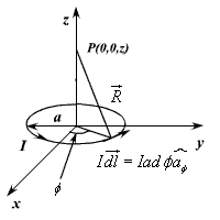 A circular loop of radius 'a' lies in the x y plane and carries current of I amps. Obtain the magnetic flux density at the centre of the loop. What is the flux density (approx) at a point on the axis far away from the loop?