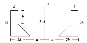 A very long straight wire is encircled by a ring having a cross section as shown in the Figure P4.3. Calculate the magnetic flux through the ring. Assume ()