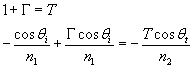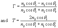 From equation (6.99) the reflection and transmission coefficients for the perpendicular polarization can be computed as