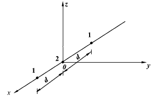Three isotropic sources with spacing 'd' between them are placed along x axis as shown in figure P7.3. The excitation coefficient of each of the outside element is unity, while that of the center element is 2. Determine the array factor and sketch the same in the xy plane.