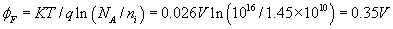 The threshold voltage expression given by (1.1) can be applied to n-channel as well as p-channel transistors. However, some of the parameters have opposite polarities for the pMOS and the nMOS transistors. For example, the substrate bias voltage VSB is positive in nMOS and negative in pMOS devices. Also, the substrate potential difference Example 2.1 Given the following parameters, namely the acceptor concentration of p-substrate NA =1016 cm-3 , polysilicon gate doping concentration ND =1016 cm-3 , intrinsic concentration of Si, ni =1.45 X 1010 cm-3, gate oxide thickness tox =500 Å and oxide-interface fixed charge density NOX =4 X 1010cm-2 , calculate the threshold voltage VTO at VSB=0. Ans : The potential difference between EI and EF for the p-substrate is |