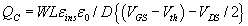Linear region : Note that this region of operation implies the existence of the uninterrupted channel between the source and the drain, which is ensured by the voltage relation VGS - Vth > VDS . The voltage between the gate and the channel varies linearly with the distance x from the source due to the IR drop in the channel. Assume that the device is not saturated and the average channel voltage is VDS /2. The effective gate voltage VG,eff = Vgs - Vth Charge per unit area = where Eg average electric field from gate to channel, where W: width of the gate and L : length of channel.