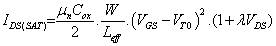 The simplified equation (2.13) points to a linear dependence of the saturation current on the drain-to-source voltage. The slope of the current-voltage characteristic in the saturation region is determined by the channel length modulation factor