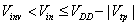 Region 4 : In this region, . As the input voltage Vin is increased beyond Vinv , the n -transistor leaves saturation region and enters linear region, while the p -transistor continues in saturation. The magnitude of both the drain current and the output voltage drops.