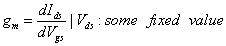 Note that the small-signal characteristics, namely transconductance gm is defined as
