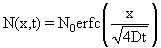 The surface concentration will be fixed at the solid solubility, and the distribution will be in the form of a complimentary error function: