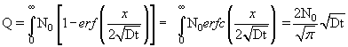 If one sketch of this concentration profile for various diffusion times, one can observe that the surface concentration is constant where as the diffusion depth increases with time. Please note that the Dose beyond x=0 continues to increase with diffusion time. Note that the dose is given by