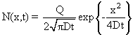 The solution that satisfies Fick's second law when a fixed dose Q is introduced as a delta function at the origin is given by