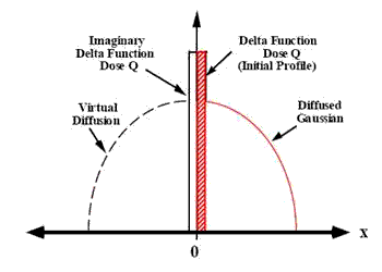 This equation can be slightly modified to model a practical situation where all the dopants from the constant source are consumed entirely to one side.