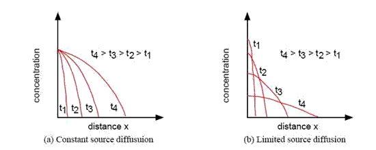 Fig. 3.40 : Diffusion profiles in constant source and limited source cases