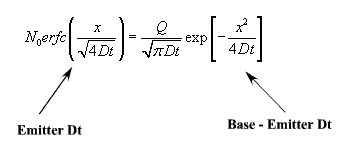 Example 5 : In a bipolar transistor, if the emitter profile is formed by a predeposition and the base profile by an implant + drive-in, then the junction for the emitter-base occurs when