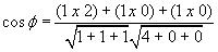 For cubic crystals, the angle, between two planes, ( h1 k1 l 1 ) and ( h2 k2 l 2 ) is given by: