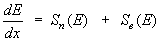If Sn (E) is energy loss per unit length due to nuclear stopping and Se (E) is energy loss per unit length due to electronic stopping, the total rate of energy loss (