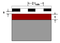For an exposure wavelength, the minimum line period, achieved with a coating of photo resist with thickness and a separation of between mask and resist is given by