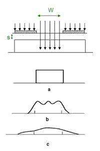 Fig. 3.58 : Diffraction effect in proximity printing for different mask wafer spacing