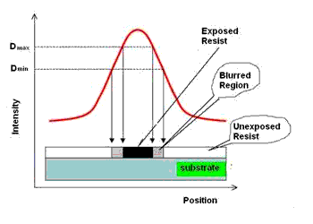Fig. 3.59 : The intensity profile of a photoresist exposed through a mask window