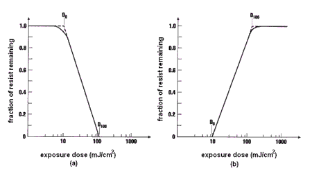 Fig. 3.60 : Contrast curves for ideal resists (a) PPR (b) NPR