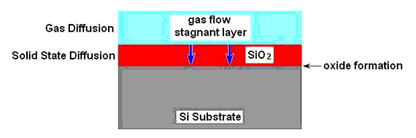 Fig. 3.14 : A Model for thermal oxidation of silicon indicating various diffusions possible