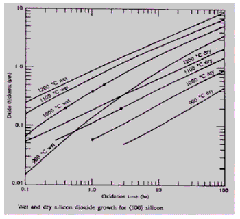 Fig.3.17 Wet and Dry oxide growth rate for Silicon