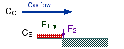 A simple case of laminar flow passing a plate is shown in Fig. 3.34. The velocity of flow near plate is very small and this results in a stagnant layer. The gas can diffuse through stagnant layer to surface. The mass transport depends fundamentally on reactant concentration, diffusivity and on boundary layer thickness. In terms of experimental parameters it depends on pressure, gas velocity, temperature distribution, reactor geometry and gas properties like viscosity etc.