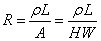 where is the resistivity of the material in -cm, L is the length of the wire, H is the thickness of the wire and W is the wire width.