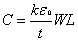 is the permittivity of free space, k is the relative dielectric constant of the insulator and t is the thickness of the insulating material.