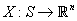 or where indicates the transpose operation. Thus an n - dimensional random vector is defined by the mapping . A particular value of the random vector is denoted by