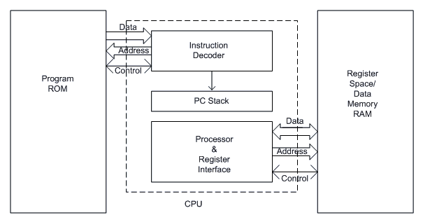 Harvard Architecture (Separate Program and Data Memory interfaces) |