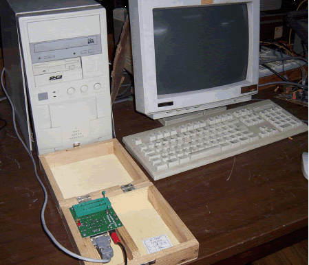 Fig 43.1 A view of the PIC programmer connected to the PC serial Port (COM1) |