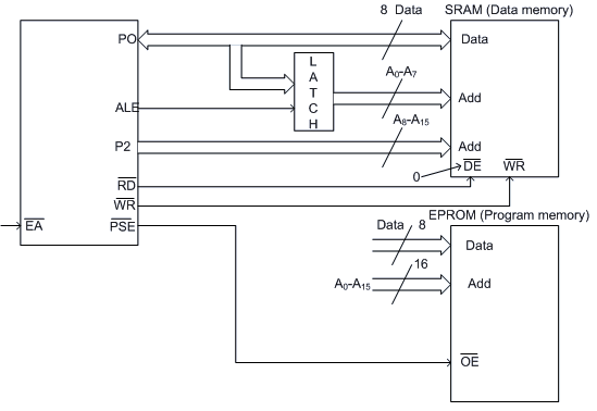 If external program/data memory are to be interfaced, they are interfaced in the following way. |