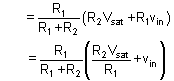When vin becomes positive and its magnitude is greater than (R2 / R1) Vsat, then the output switches to +Vsat. Therefore, the UTP at which the output switches to +Vsat, is given by