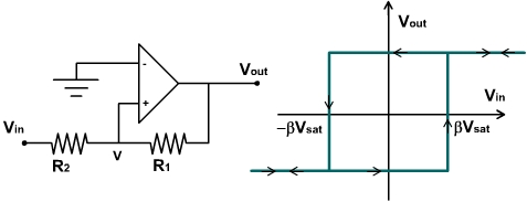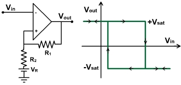 Positive feedback has an unusual effect on the circuit. It forces the reference voltage to have the same polarity as the output voltage, The reference. voltage is positive when the output voltage is high (+vsat) and negative when the output is low (–vsat).