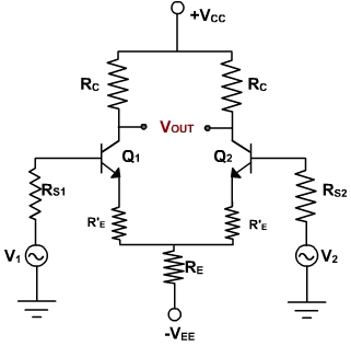 By using external resistors R'E in series with each emitter, the dependence of voltage gain on variations of r'e can be reduced. It also increases the linearity range of the differential amplifier.