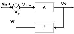 If this is so, Vf can be connected directly and externally applied signal can be removed and the circuit will continue to generate an output signal. The amplifier still has an input but the input is derived from the output amplifier. The output essentially feeds on itself and is continuously regenerated. This is positive feedback. The over all amplification from vin to vf is 1 and the total phase shift is zero. Thus the loop gain A β is equal to unity.