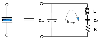 Above fS, the crystal behaves inductively. The parallel resonant frequency is the frequency at which the circulating or loop current reaches a maximum value. Since this loop current must flow through the series combination of CS and Cm, the equivalent Cloop is
