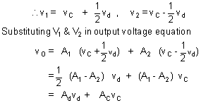 In practical differential amplifier, the output depends not only on difference signal but also upon the common mode signal (average).