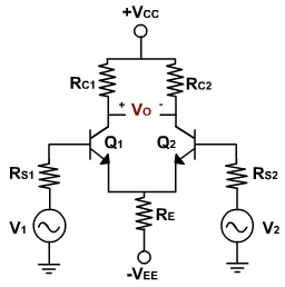 The connecting wires on the input bases act like small antennas. If a differential amplifier is operating in an environment with lot of electromagnetic interference, each base picks up an unwanted interference voltage. If both the transistors were matched in all respects then the balanced output would be theoretically zero. This is the important characteristic of a differential amplifier. It discriminates against common mode input signals. In other words, it refuses to amplify the common mode signals.