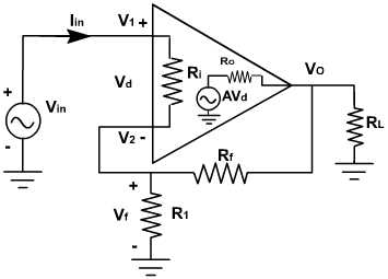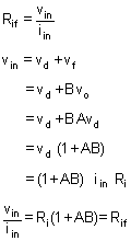 Since AB is much larger than 1, which means that Rif is much larger that Ri. Thus Rif approaches infinity and therefore, this amplifier approximates an ideal voltage amplifier.