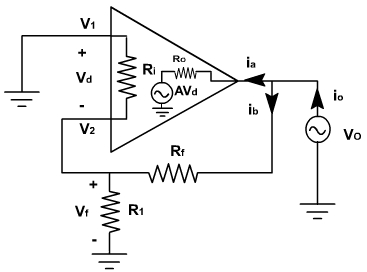 fig. 1, shows a voltage series feedback with the OPAMP equivalent circuit.