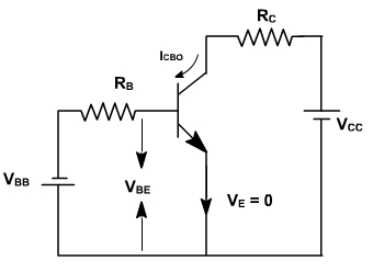 If RB = 100 K, ICBO = 100 m A, Then VBB must be 10.1 Volts. Hence transistor must be capable to withstand this reverse voltage before breakdown voltage exceeds.