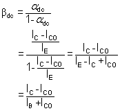 Cut off of a transistor means IE = 0, then IC= ICBO and IB = - ICBO. Therefore, the above expression bdc gives the collector current increment to the base current change form cut off to IB and hence it represents the large signal current gain of all common emitter transistor.