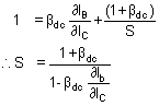 and S = 1 + bdc. If b dc=100, S = 101, which means ICincreases 101 times as fast as ICO. Such a large change definitely operate the transistor in saturation.