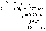Let IB be the base current of each transistor and IC be the collector current of Q1 and Q2.