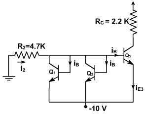 For the circuit shown in fig. 5, determine the emitter current in transistor Q3. Given that β = 100, VBE = 0.715V.