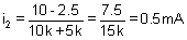 and vo = 10 - 5 x 0.25 = 7.5 V