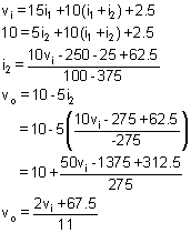 and vp = 10 ( 0.04 vi - 0.1 ) + 2.5 = 0.4 vi + 1.5
