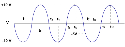To understand the circuit operation, let the input voltage varies from -10 V to +10 V. The different stages of circuit from 0 to t10 are shown in fig. 7(a).