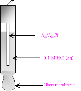In the above equation, since Eo is known and the Eo (SCE) is + 0.242V, EH can be calculated. This value is substituted in Eqn. (24.9) to obtain the pH of the solution.The commercial pH meters make use of a glass electrode - SCE assembly to measure pH. The glass electrode consists of a thin glass bulb of a special quality glass containing a solution of constant pH into which a reference electrode dips. The cell assembly can be represented as